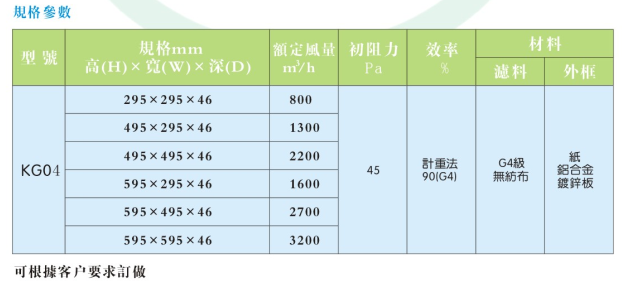 初效過濾器有板式、折疊式、袋式三種樣式,外框材料有紙框、鋁框、鍍鋅鐵框,過濾材料有無紡布、尼龍網(wǎng)、活性碳濾材、金屬孔網(wǎng)等,防護(hù)網(wǎng)有雙面噴塑鐵絲網(wǎng)和雙面鍍鋅鐵絲網(wǎng)。G系列粗效