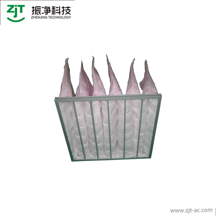 本公司采用的濾材為三層濾料均勻熱熔粘合。第一層粗纖維過(guò)濾棉捕捉空氣中較大的塵埃,較細(xì)的纖維濾紙捕捉空氣中較小的塵埃,最外層無(wú)紡布為強(qiáng)化保護(hù)層。合理的三層設(shè)計(jì)使產(chǎn)品具有優(yōu)良的性能,牢固的熱熔技術(shù)避免了風(fēng)壓產(chǎn)生的泄露,隔網(wǎng)避免了袋與袋之間的貼合,更加細(xì)化了送風(fēng)區(qū)域,降低了阻力,并使容塵量達(dá)到了最大。